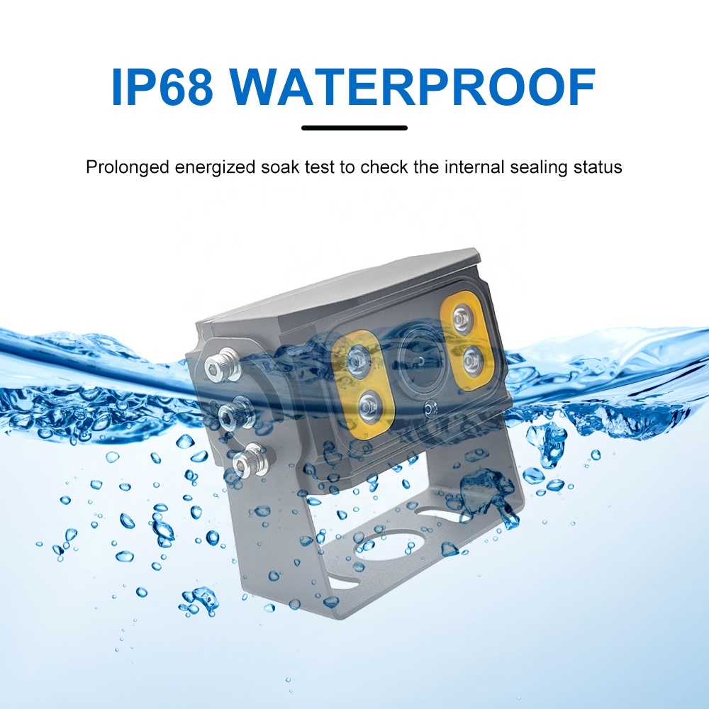 The camera is rated IP68 waterproof, allowing reliable operation during heavy rain, vehicle washing, and long-term outdoor exposure. Internal sealing processes protect the sensor and electronics from water ingress, dust, and corrosion.